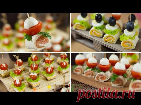 Мини-роллы с поджаренным хлебом и вкусными многослойными закусками