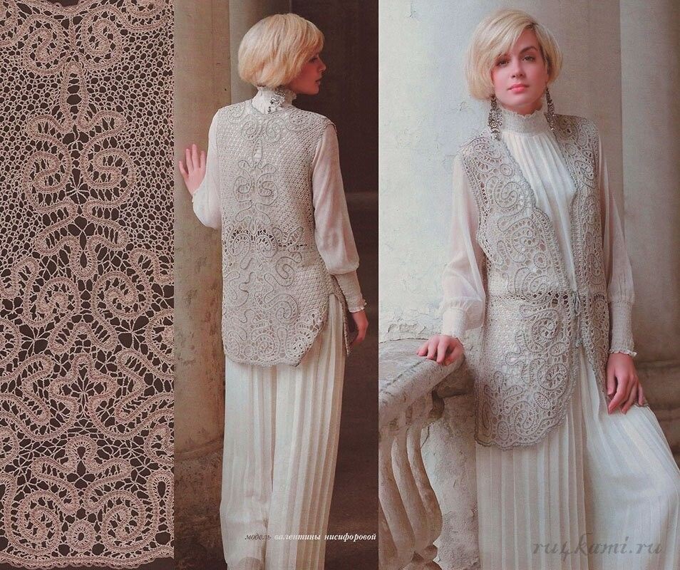Жилет крючком, брюггское кружево