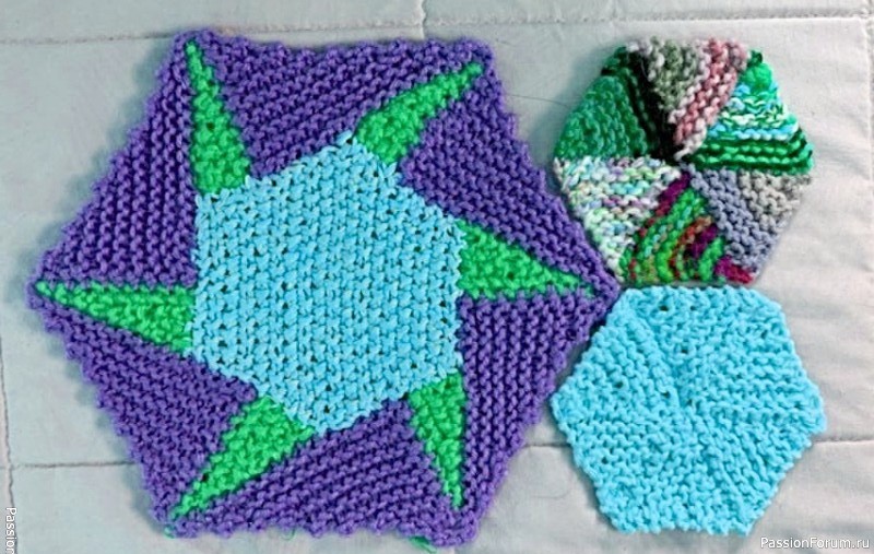 Вязаный квилт. (Шестиугольник-боковым способом) | Вязание для мужчин спицами. Схемы вязания Шестиугольник, связанный по методу лог-кэбина, может воплотиться в модуль мячика или вертушки.