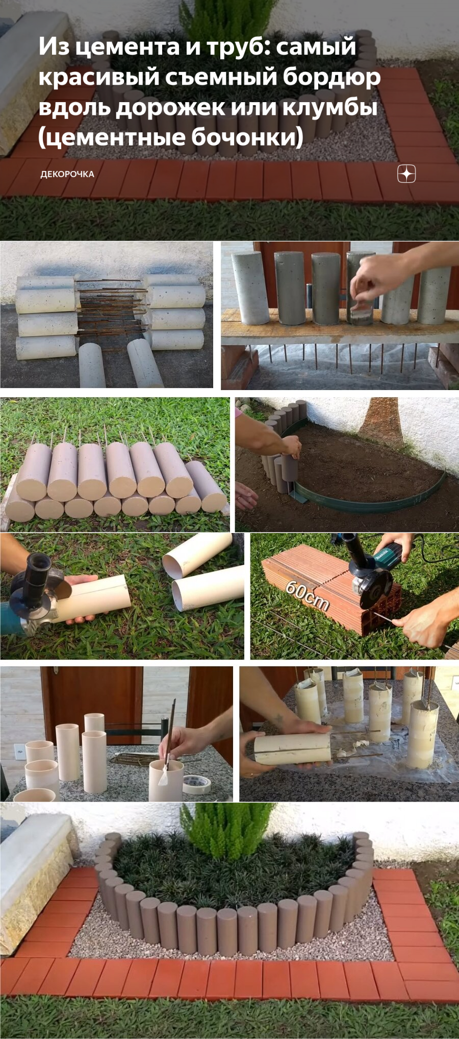 Из цемента и труб: самый красивый съемный бордюр вдоль дорожек или клумбы (цементные бочонки) | Декорочка | Яндекс Дзен