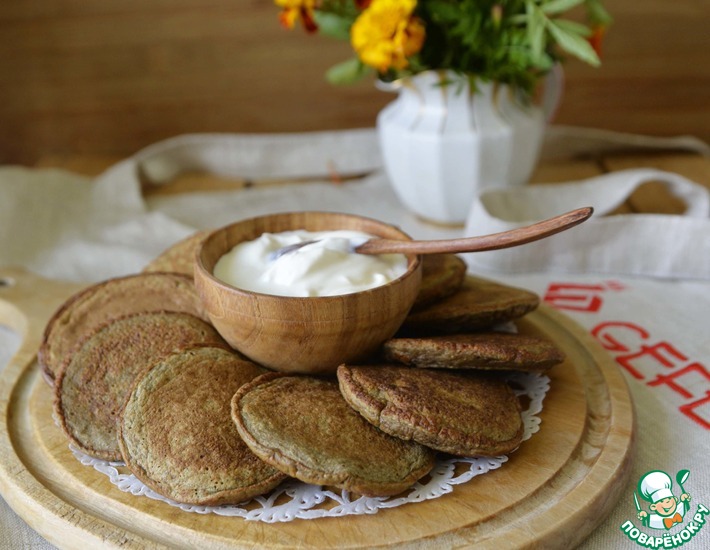 - Сковороду смазываем маслом, много не лейте, удобно использовать сковороду для оладий. На разогретую сковороду наливаем по пол-половника "теста". Готовим около 2-3 минут на среднем огне, под крышкой. Переворачиваем.
