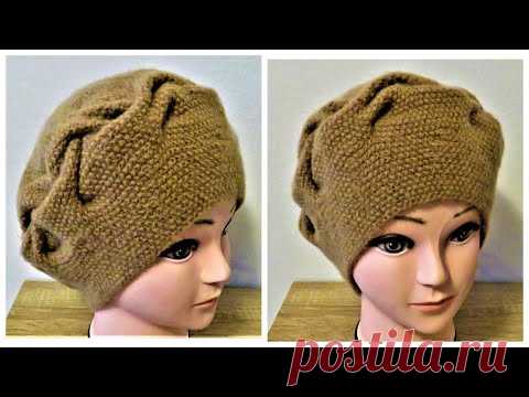БЕРЕТ С ПОПЕРЕЧНОЙ КОСОЙ.БЕРЕТ ЖЕМЧУЖНЫМ УЗОРОМ.ПОПЕРЕЧНОЕ ВЯЗАНИЕ.