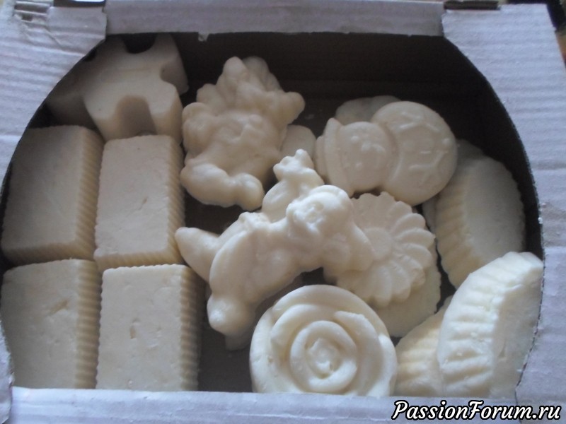 Мои запасы на все лето | Работы пользователей Наварила кучу мыла.На этот раз варила мыло исключительно из животных жиров. Две части говяжьего и одна часть свиного. Сначала заготовила домашней основы холодным способом, получилось целое пластиковое ведро.А потом топила основу и делала разное мыло.Белое мыло - антисептическое...