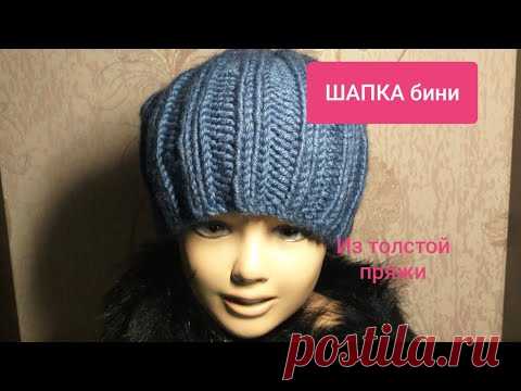 ШАПКА БИНИ из толстой пряжи для начинающих МК Видео Ladies Hat knitting