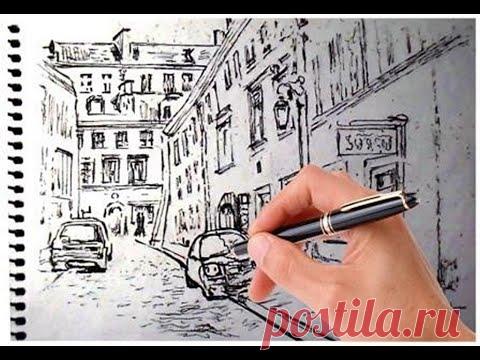 Как нарисовать архитектуру городского пейзажа черным линером. Как рисовать скетчи