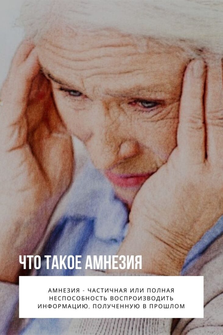 Амнезия — частичная или полная неспособность воспроизводить информацию, полученную в прошлом. Она может быть следствием черепно-мозговой травмы, дегенеративных процессов, нарушений обмена веществ, эпилепсии или психологических нарушений. Диагноз ставится на основании клинических симптомов, результатов нейропсихологического и радиологического (КТ, МРТ) исследований. Лечение амнезии направлено на первопричину заболевания.