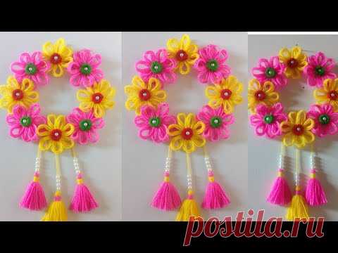 DIY easy woolen flower wall hanging!! DIY Room decor!! Wool craf ideas!! Best out of waste toran