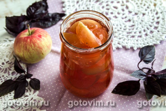 Варенье из яблок с базиликом. Рецепт с фото Такое варенье - настоящая находка в сезон большого урожая яблок. Когда все шарлотки уже приготовлены и повидло сварено, хозяйки начинают искать новые, оригинальные рецепты утилизации яблок. Рецепт варенья из яблок с базиликом окажется как нельзя кстати. Благодаря темным веточкам базилика, сироп приобретает красивый розовый оттенок, и яблоки становятся очень красочными. Для яблочно-базиликового варенья походит только фиолетовый б... Подробнее