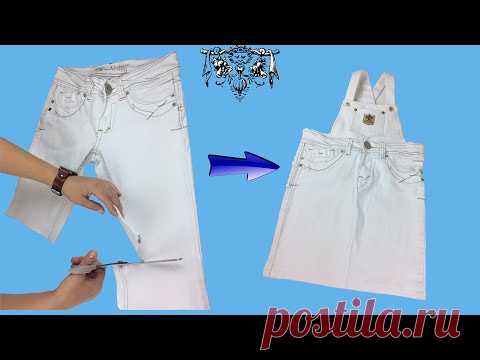 Перешиваем белые джинсы в сарафан для девочки