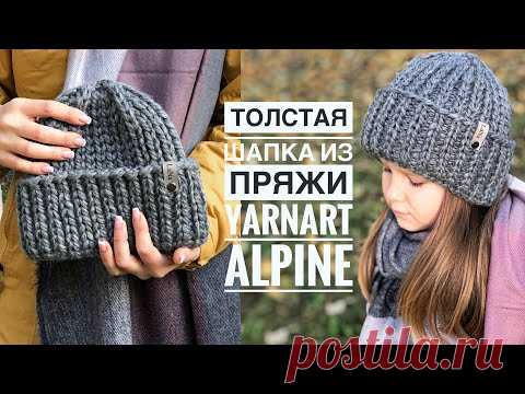 Мастер-класс толстая шапка спицами за пару часов из 1-го моткаYarnArt Alpine красивой резинкой 1на1.