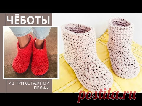 Чёботы из трикотажной пряжи. Домашние тапочки своими руками. Вязание крючком |