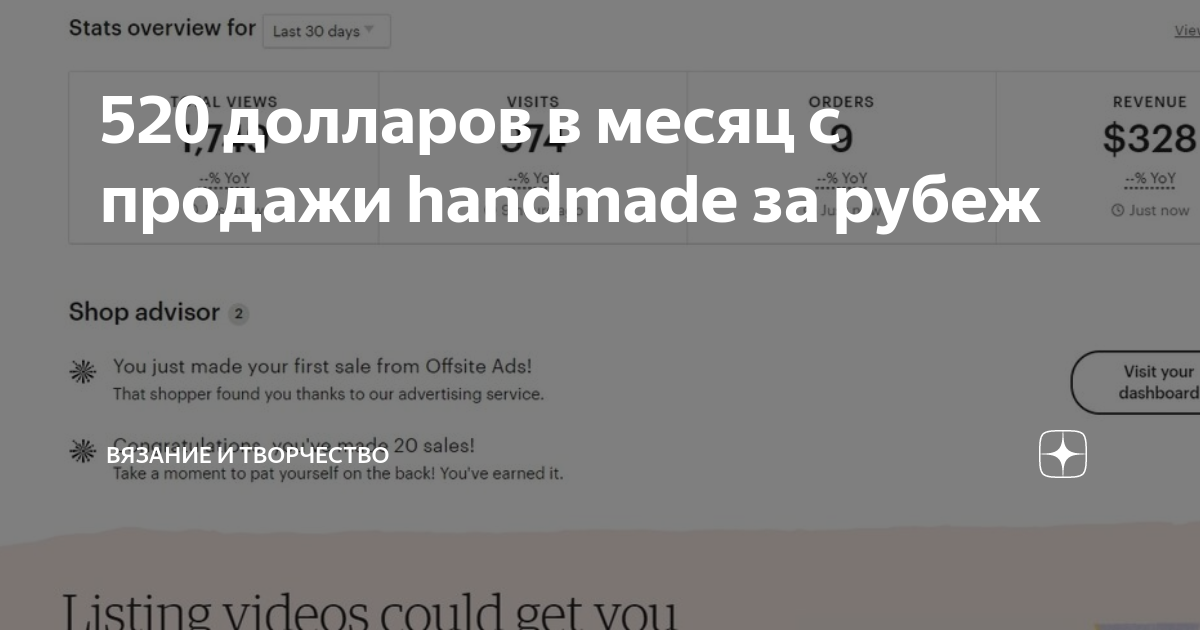 520 долларов в месяц с продажи handmade за рубеж Ну что же, наконец, я перевалила за порог в 500 баксов. Эта сумма продаж со всех трех магазинов на etsy. Выглядит многообещающе, но 520 долларов - это "грязный" доход. В этой статье расскажу, что лучше и выгоднее продается, ну и о расходах.