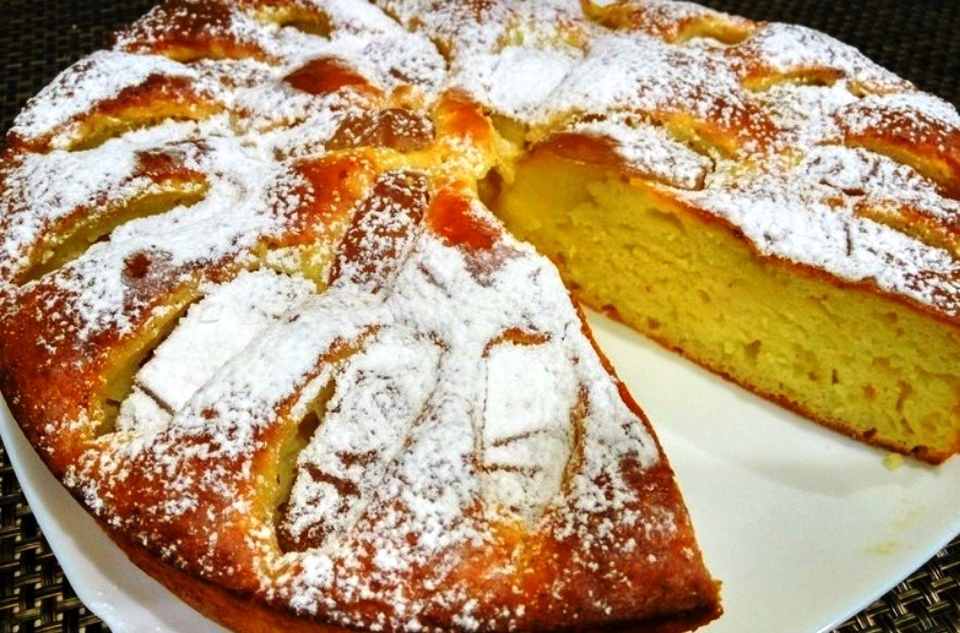 Шарлотка с творогом и яблоками Очень мягкая и нежная шарлотка с творогом и яблоками на натуральном йогурте.