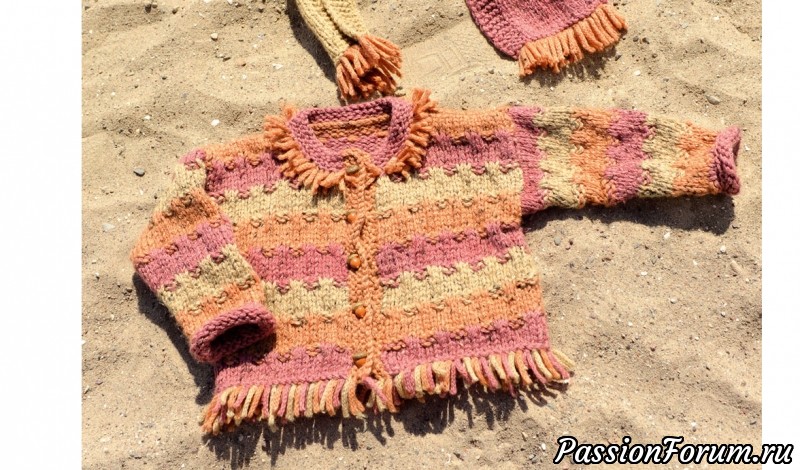 Жакет в полоску. Описание | Вязание спицами для детей Ультрамодный жакет — короткий и широкий — отделан бахромой по краю горловины и по низу изделия. РАЗМЕРЫ110/116 (122/128) 134/140Шарф: ок. 18 (20) 22 см x 135 (144) 153 смВАМ ПОТРЕБУЕТСЯПряжа (50% шерсти альпака, 30% шерсти, 14% акрила, 6% вискозы; 65 м/50 г) для жакета —...