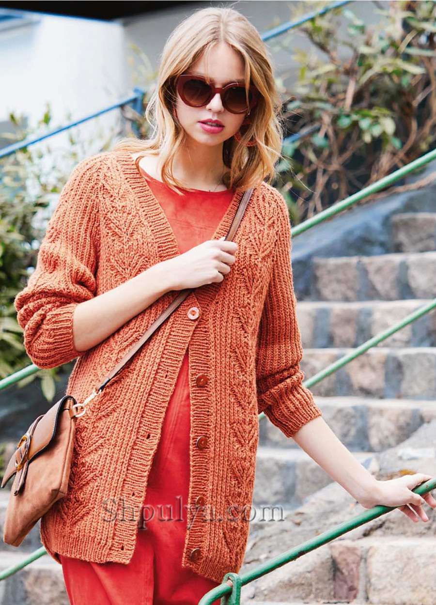 Кардиган с цветами, выполненными патентным узором — Shpulya.com - схемы с описанием для вязания спицами и крючком