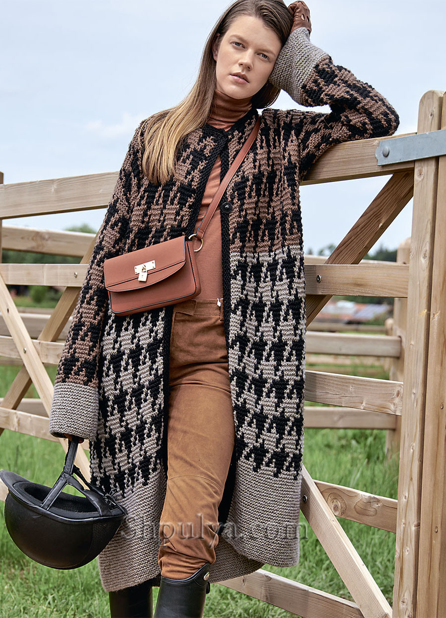 Удлиненный кардиган с узором «Гусиная лапка» — Shpulya.com - схемы с описанием для вязания спицами и крючком