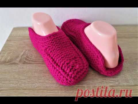 СИМПАТИЧНЫЕ ТАПОЧКИ-ШЛЕПАНЦЫ НА ДВУХ СПИЦАХ БЕЗ ШВОВ.
