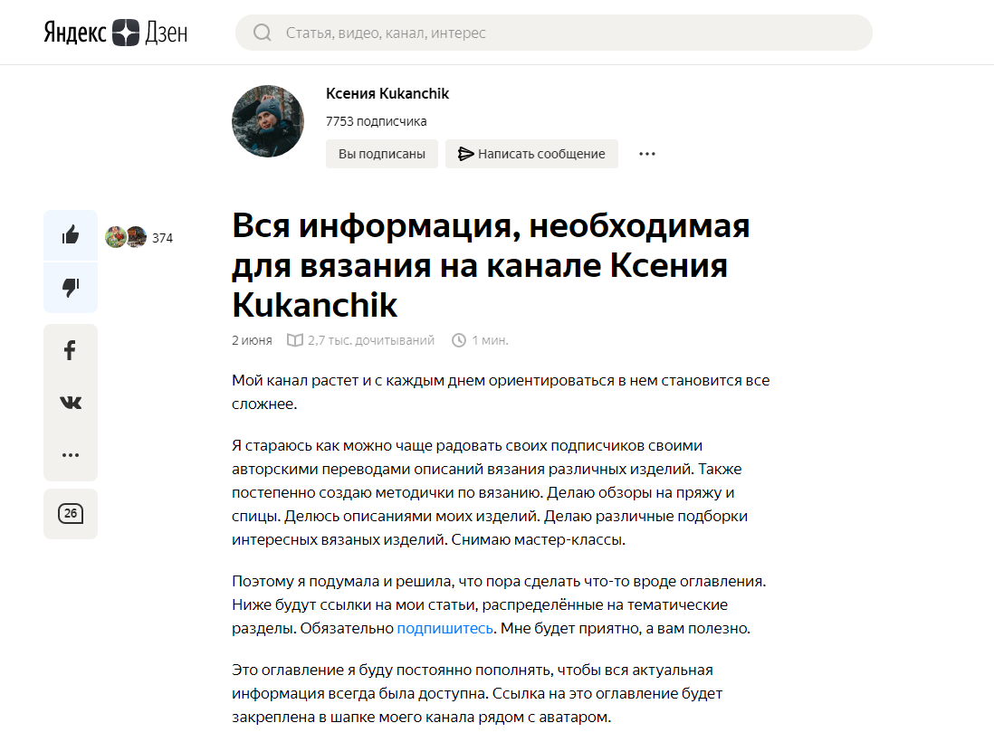 Вся информация, необходимая для вязания на канале Ксения Kukanchik | Ксения Kukanchik | Яндекс Дзен