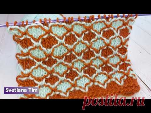 Невероятно красивый двухцветный узор спицами, подойдет для детских изделий. Вязание спицами № 628
