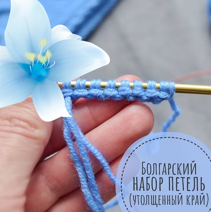 Болгарский набор петель или "Болгарский зачин", как его еще называют, очень часто используется в вязании. Очень красиво смотрится, как дополнительное оформление края изделия, уменьшает эффект заворачивания полотна лицевой глади, идеально подходит для резинки 2×2.