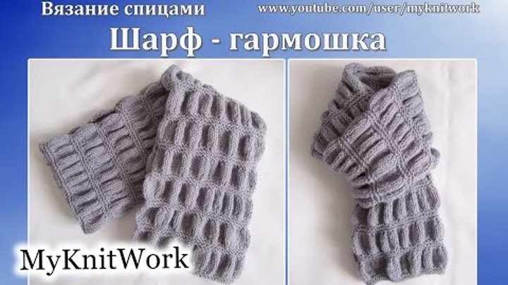 Вязание спицами. Шарф - Гармошка. Шарф спицами.