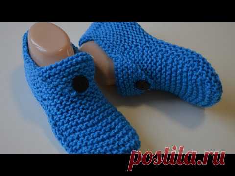 Домашние тапочки двумя спицами без швов