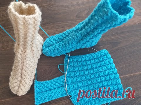 Сапожки с косами на 2 спицах . Вязание спицами.