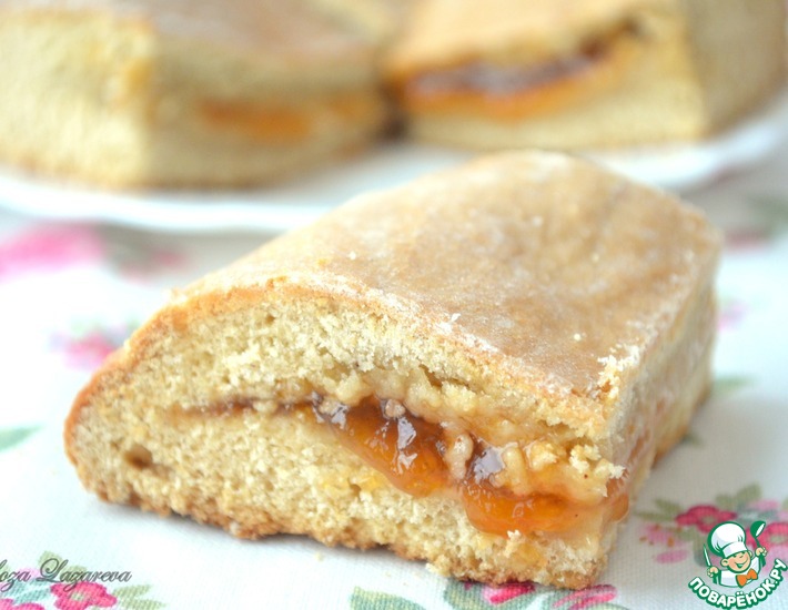- мажем тесто джемом, оставив края нетронутыми, иначе они не скрепятся!