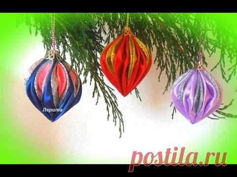 Шарики на ёлку, новогодние игрушки канзаши, мастер класс.