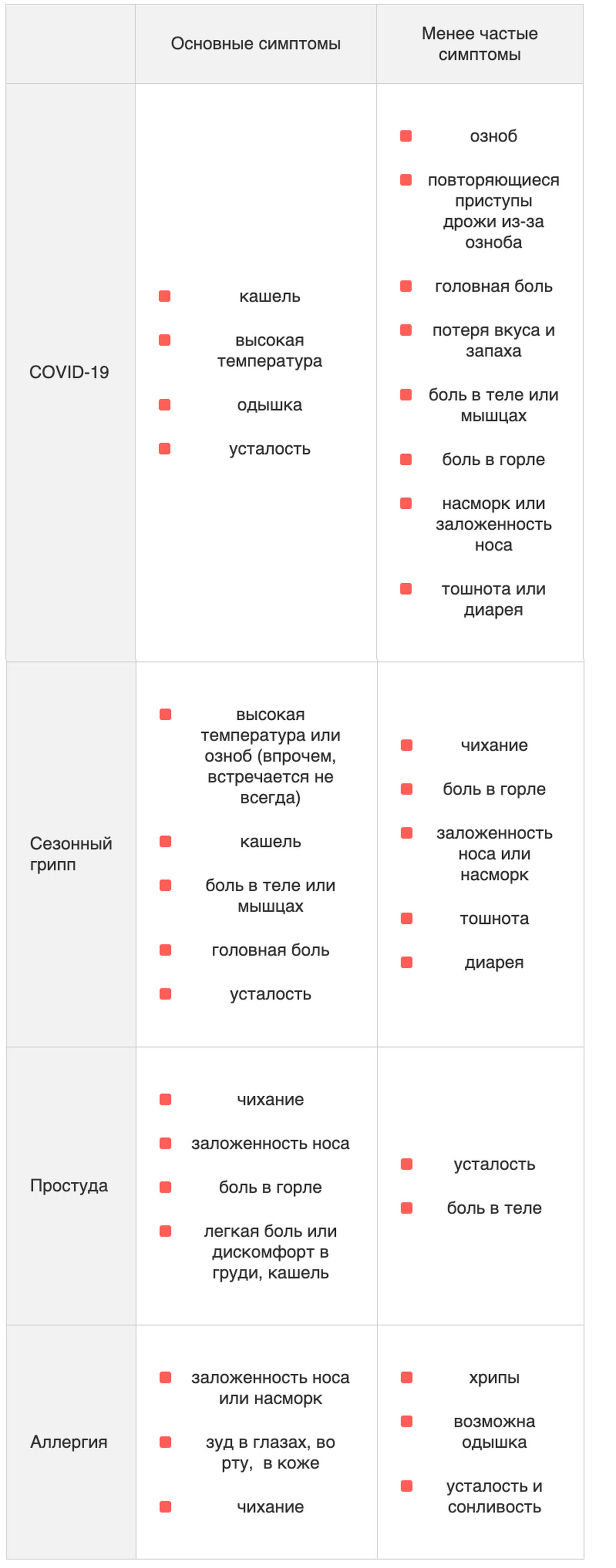 Как отличить коронавирус от простуды и гриппа? Простая таблица