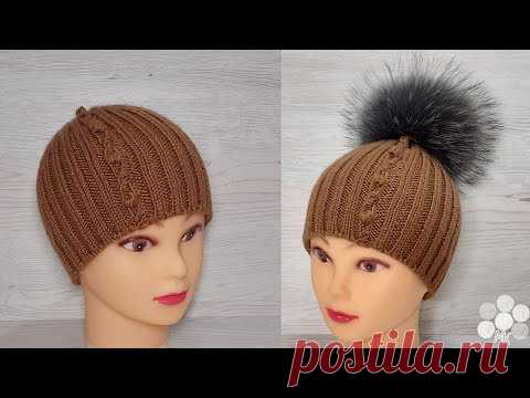 ШАПКА СПИЦАМИ РЕЗИНКОЙ 2 НА 2 и ЯПОНСКИМ узором с ФАБРИЧНЫМ наборным краем и АККУРАТНОЙ макушкой
