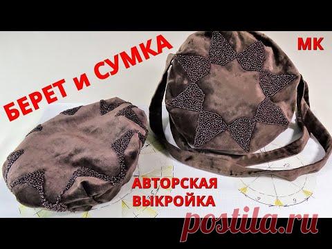 Гламурные БЕРЕТ и СУМОЧКА с бисером в комплекте по одной основе😲 Построение ВЫКРОЙКИ на свой размер📐
