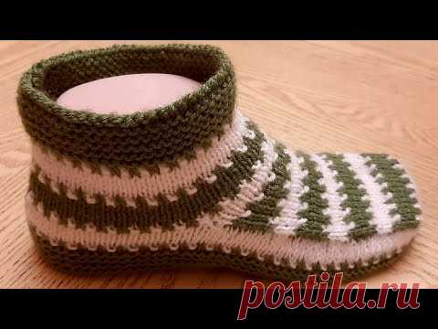 Новинка 2020 : Простые , удобные тапочки-следки на двух спицах без швов (1 часть).