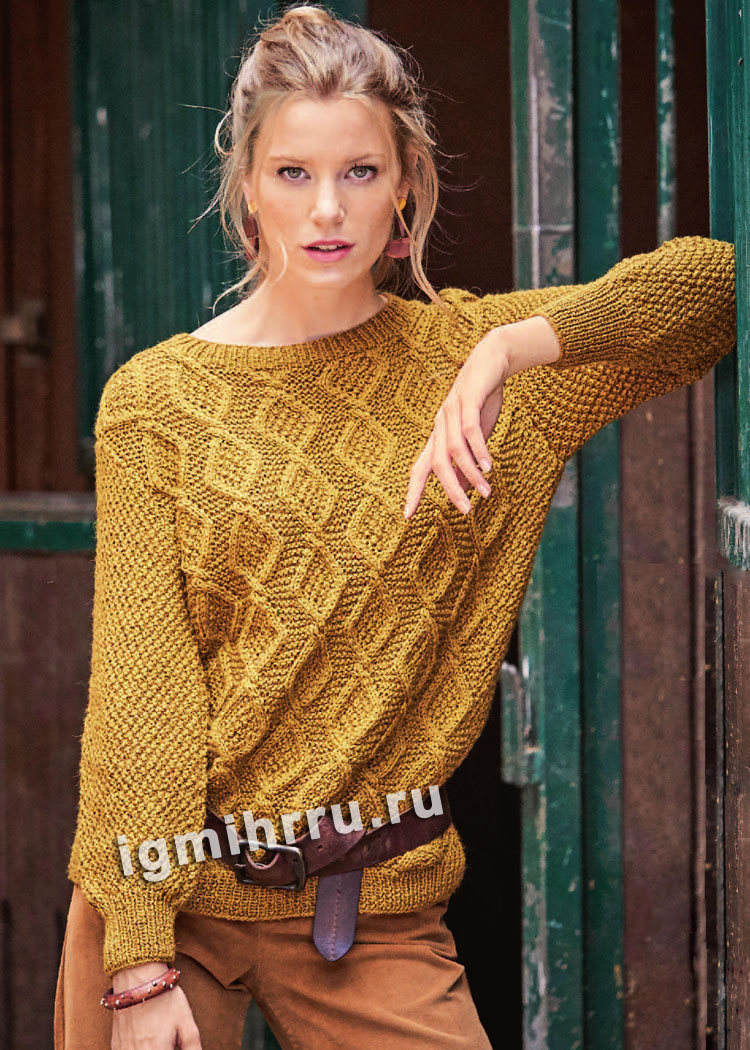 Вязание с Еленой Сербиной: ЗОЛОТИСТО-КОРИЧНЕВЫЙ ПУЛОВЕР С УЗОРОМ ИЗ РОМБОВ