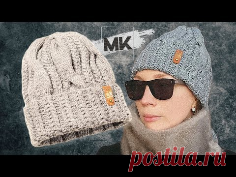 ВЯЖЕМ ЗИМНЮЮ ШАПКУ НЕОБЫЧНЫМИ КОСАМИ / Подробный мастер-класс по вязанию женской шапки спицами