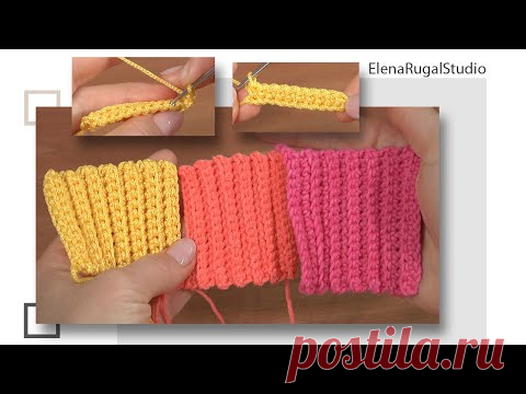 Узор крючком для начинающих из столбиков без накида за дальнюю полупетлю Урок 27 Резинка