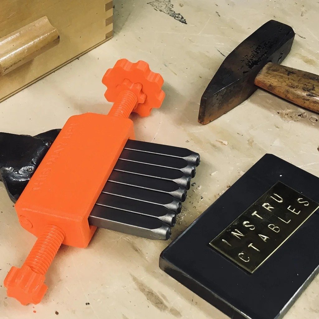 Оснастка для металлически штампов Интересы мастера с ником smogdog разнообразны в том числе это и металлообработка. Есть у мастера и набор буквенно-цифровых штампов. Иногда на металлические детали он набивает обозначение, слова и даже целые фразы. И чем длиннее слова, тем больше "пляшут" буквы. Это происходит из-за разной