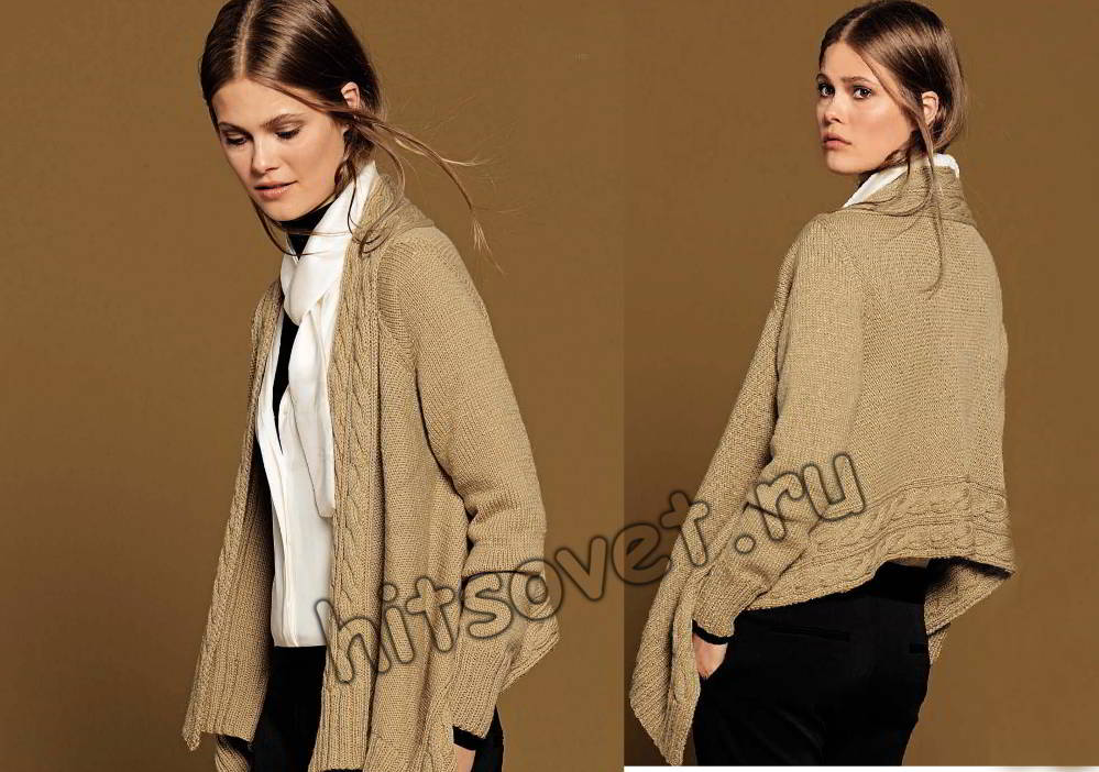 Жакет разлетайка - Хитсовет Вязание спицами для женщин модного жакета разлетайки с косами со схемой и бесплатным описанием.