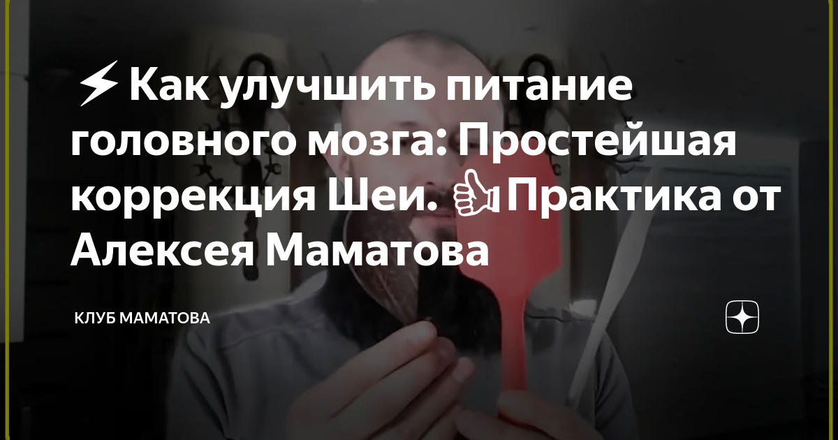 ⚡️Как улучшить питание головного мозга: Простейшая коррекция Шеи. 👍Практика от Алексея Маматова Чтобы голова была ясной и здоровой, а глаза хорошо видели, - нужно регулярное поступление кислорода и питательных веществ. Если головному мозгу не хватает крови, то проблема в шее. Для проработки болезненных участков приготовьте деревянную ложку или лопатку.