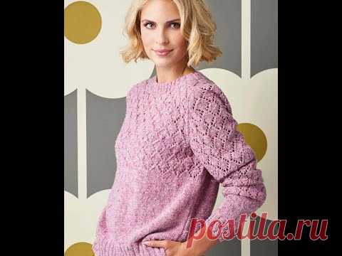 Изящный, изумительный джемпер ажурным узором в розово- сиреневом цвете