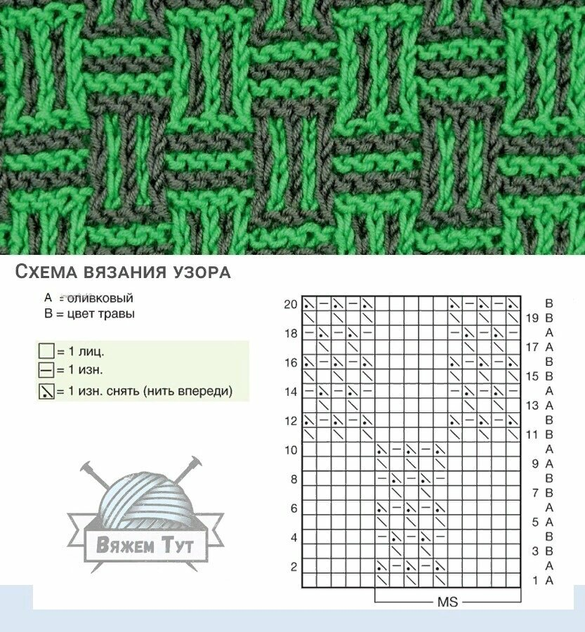 Двухцветные узоры спицами со схемами (7 вариантов для вдохновения) | 38 рукоделок | Яндекс Дзен