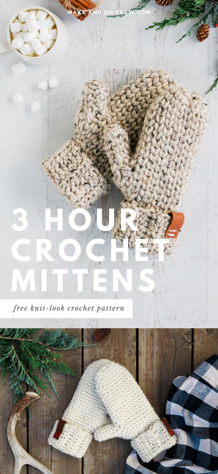 Вязаные крючком толстые варежки на 3 часа - бесплатный узор + подробное руководство >> Make & Do Crew
