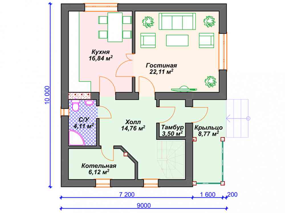 Готовый проект каменного дома из блока 9 на 10 м с 3 спальнями и мансардой