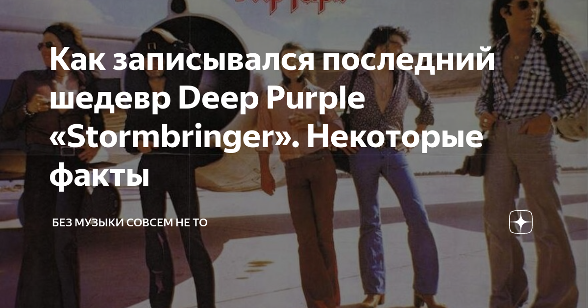 Как записывался последний шедевр Deep Purple «Stormbringer». Некоторые факты Альбом Deep Purple «Stormbringer» - это самый последний шедевр музыкантов группы. Впоследствии они не смогли создать ничего более значительного, даже после своего воссоединения с Гилланом и Гловером в 1984-м. В публикации приводятся некоторые интересные моменты, сопровождавшие запись этого великого творения такой же великой рок-группы 70-х