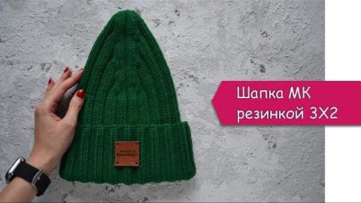 Шапка спицами резинкой 3 на 2 с красивой макушкой МК
