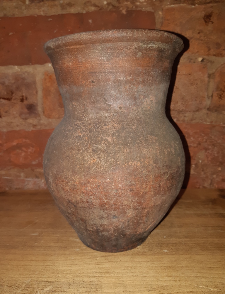 Высота : 190 мм. Диаметр верх / две трети / низ / дно : 125 /190 / 75 мм. Утраты. Объём : 1.4 литра.