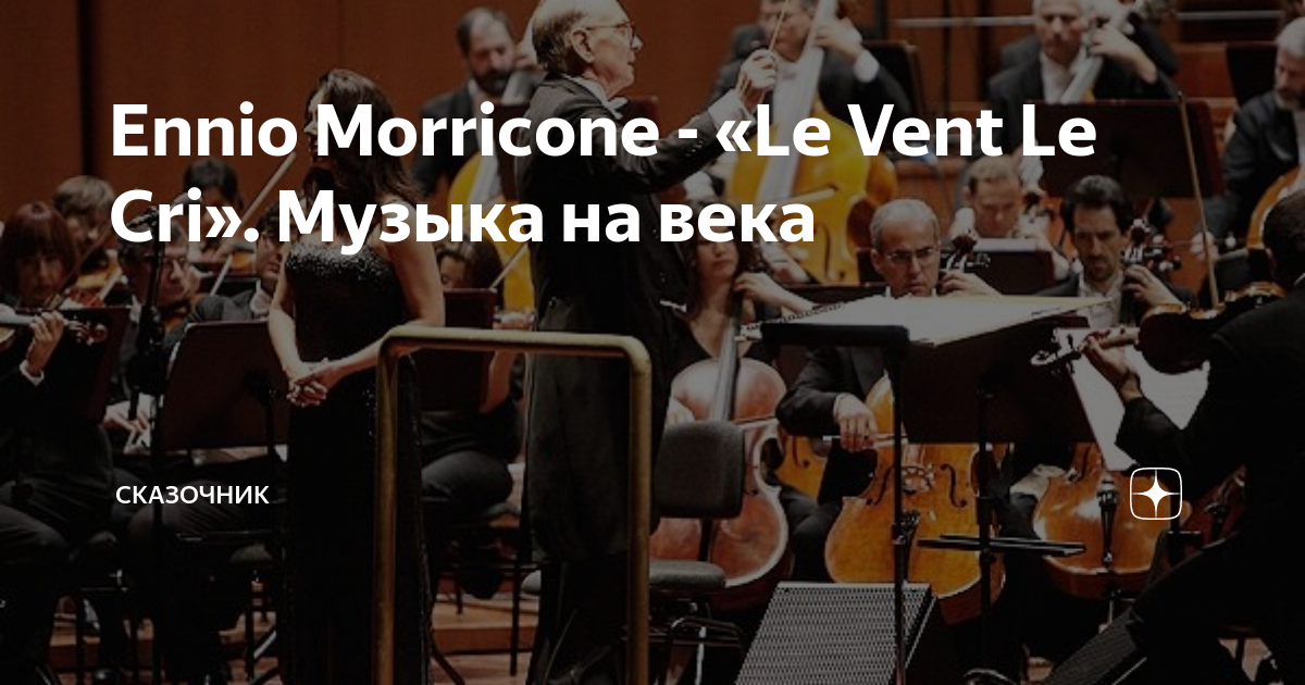 Ennio Morricone - «Le Vent Le Cri». Музыка на века Прошлый век одарил нас большим количеством великолепных музыкантов и композиторов. Были среди них и такие, кого слушатель уже при жизни называл "классиками", а то и "великими". "Одинокий пастух" "Полёт кондора" "Chi Mai"