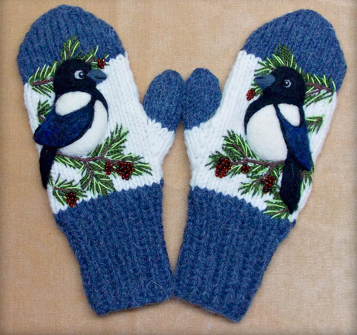Яркое креативное вязание - Красивые яркие варежки спицами и Вышивка по трикотажному полотну на LiveInternet
