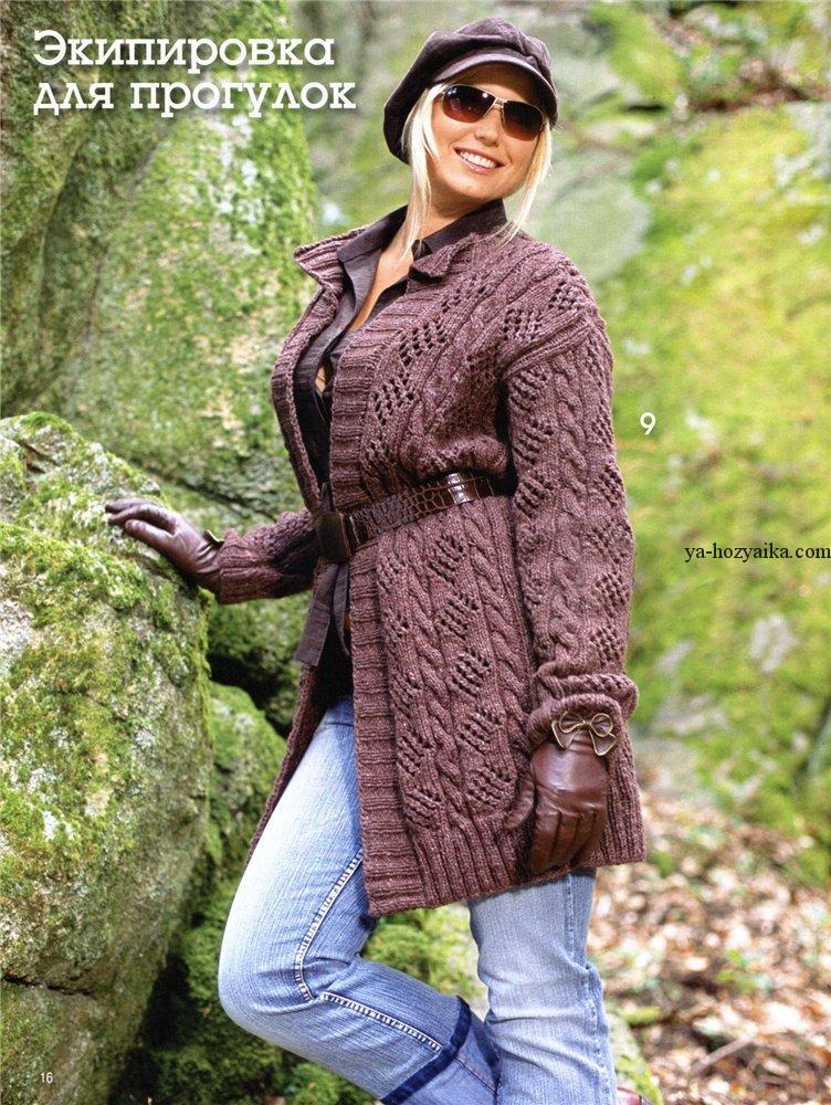 Осенне-весенний кардиган спицами вязаный. Кардиган с красивым узором спицами.