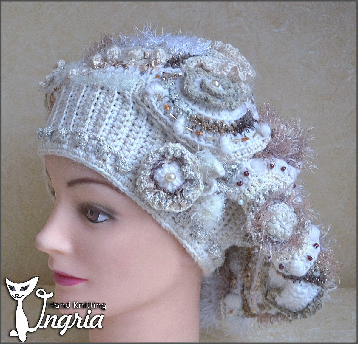 Женский берет в технике фриформ Волшебный сад. | Вяжем крючком с Ольгой Ингрией | Яндекс Дзен